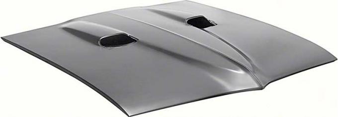 Reproduction of the original Pontiac Firebird 400 hood designed for use with 1967-69 Firebird 400 models. Manufactured from OE-gauge stamped steel to exact factory specifications, this hood features the correct dual hood scoops for an authentic appearance. Designed for direct bolt-on installation using existing or reproduction hood hinges. Finished in black EDP coating to resist rust and corrosion until final prep and paint. For hood scoop inserts, refer to part number K892980 (closed hood scoops) or K892982 (open hood scoops).