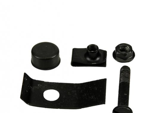 Correct reproduction center hood support kit. Center hood adjuster is required for all F-body cars equipped with hidden wipers. Adjuster kit keeps proper clearance for wipers to retract below hood edge. GM Part #: bolt 3963260, jamb nut…