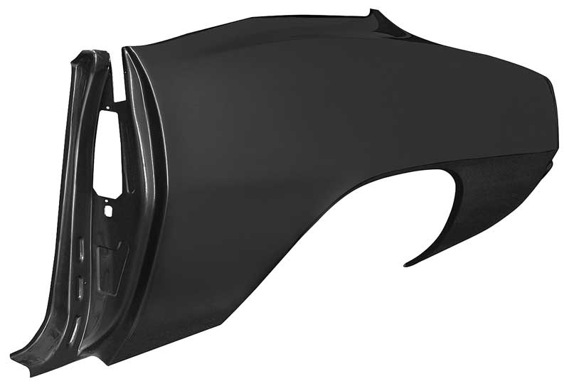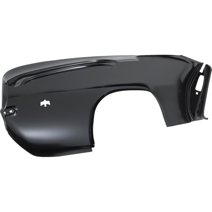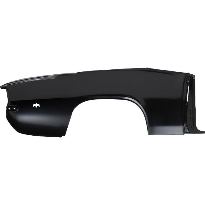 Reproduction complete quarter panel for 1969 Firebird convertible models. Each quarter panel is manufactured in quality stamped steel and matches the original in quality and fitment. Not just a replacement skin, this panel replaces the entire quarter panel section including the door jamb, trunk gutter, reinforced bumper bracket area, and more. Will attach at the original factory seams. Panel features a black electrophoretically deposited coating (EDP, or E-coat) for corrosion protection.