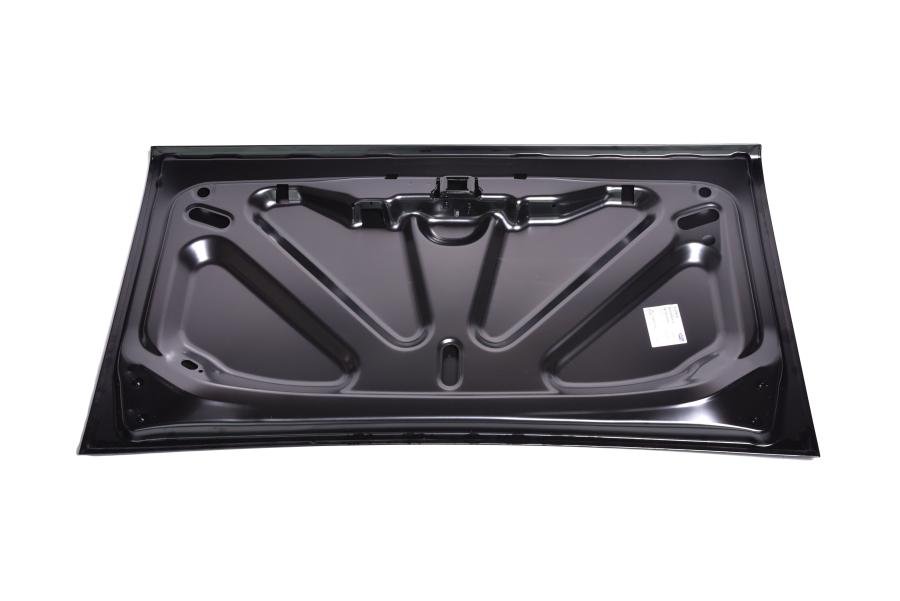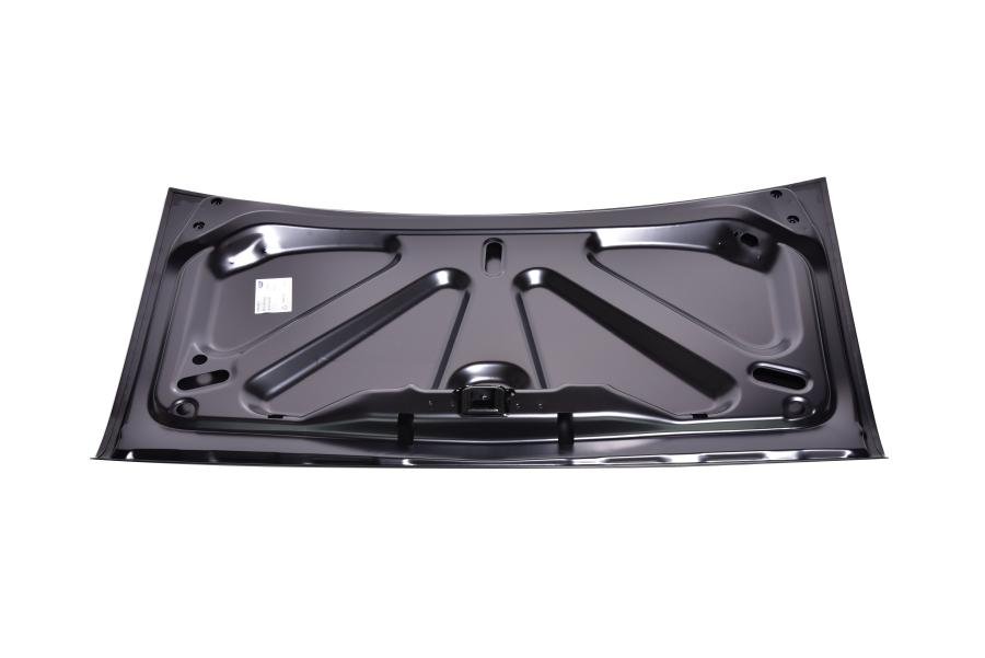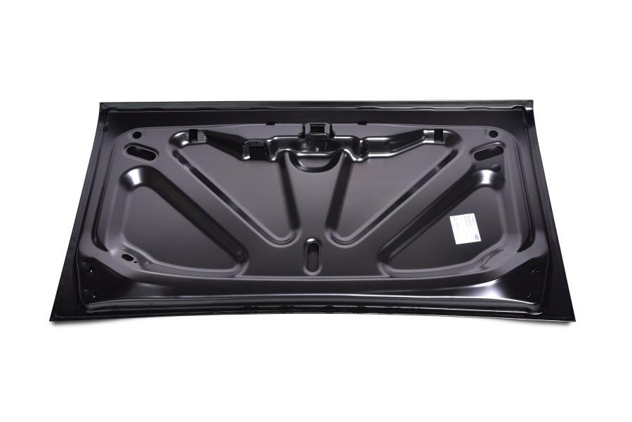 Instructions: Remove the original trunk lid by unbolting the hinges and disconnecting the latch mechanism. Align the new trunk lid on the hinges and loosely secure with hardware. Check for even gaps along the quarter panels and rear body panel. Adjust as needed, then tighten all fasteners and connect the latch mechanism. Test for proper closure before paint and final assembly.