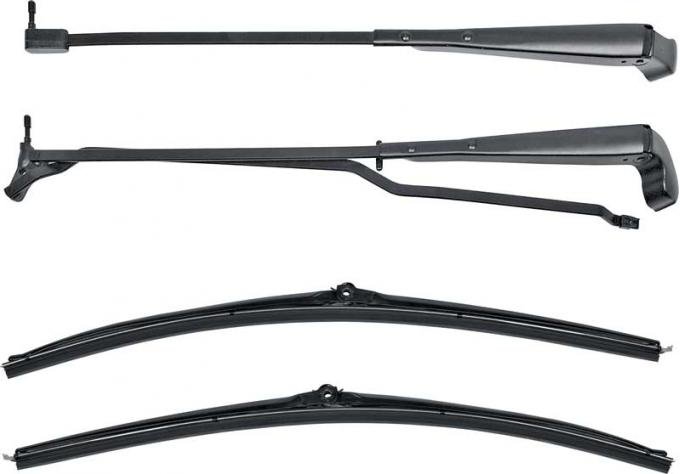 The 1970-1981 Camaro / Firebird Black Wiper Arms & Blades for Cars with Hidden / Recessed Wipers are high-quality replacements designed specifically for F-body models equipped with factory recessed wiper systems. These wiper arms feature the correct J-hook design and tension for smooth, streak-free wiping across the windshield. Finished in matte black for a clean, factory appearance, the set includes both arms and matching blades. Whether you're restoring function or upgrading appearance, this kit ensures quiet, effective operation and OEM-style compatibility.
