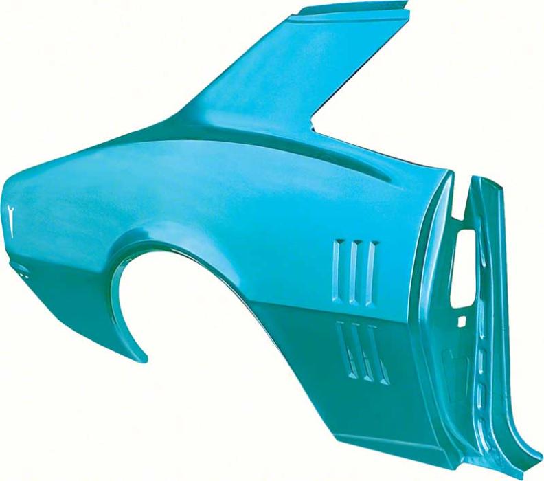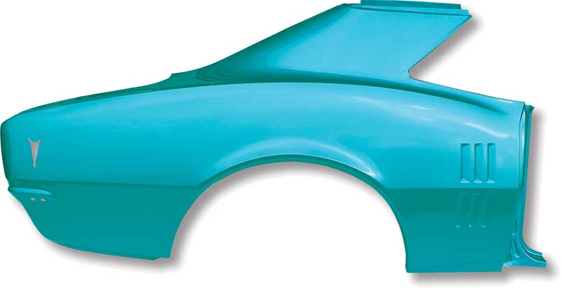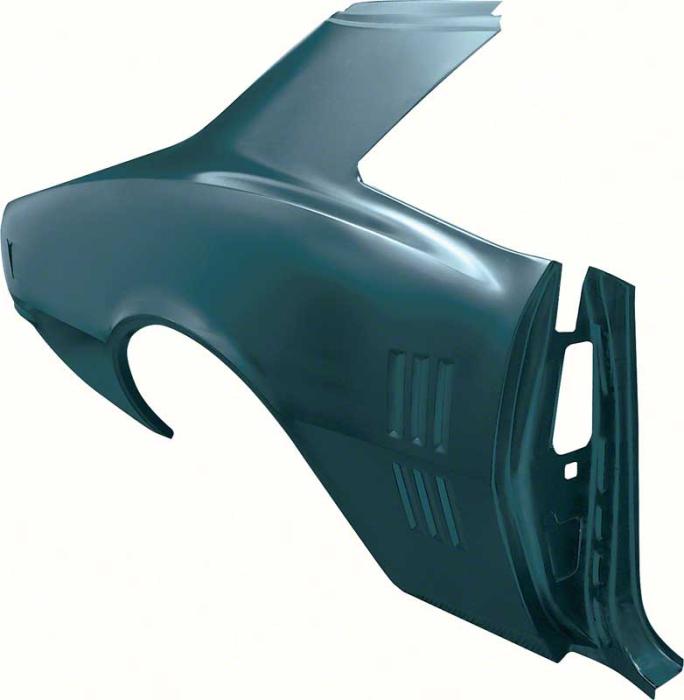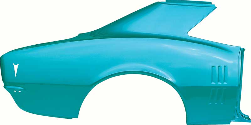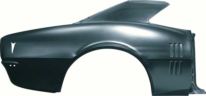 Reproduction of the original complete quarter panel specifically designed for use on 1968 Firebird coupe models. Each quarter panel is manufactured in quality stamped steel and matches the original in quality and fitment. Not just a replacement skin, this panel replaces the entire quarter panel section including the door jamb, trunk gutter, upper sail panel and more. Will attach at the original factory seams. Panel features a black electrophoretically deposited coating (EDP, or E-coat) for superior long-term corrosion protection. Ready to be prepped, primed and painted without stripping. The quarter panel is complete and ready to install. Note: Refer to part number # 4229997 for rear quarter panel louver trim set.