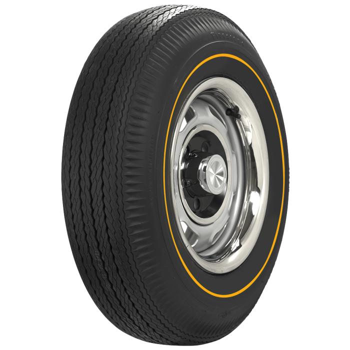Corvette Sting Ray buyers could choose from many options, including the tires. Blackwall, narrow whitewall and goldline tires were options during the 1965 and 1966 Corvette Sting Ray production years. Goldline may also be referred to as goldwall or gold stripe tires. These tires are available in authentic Firestone, BFGoodrich and Goodyear brands in the original 775-15 bias ply size, and we also produce a modern radial BFGoodrich 205/75R15 with a 3/8-inch gold line.