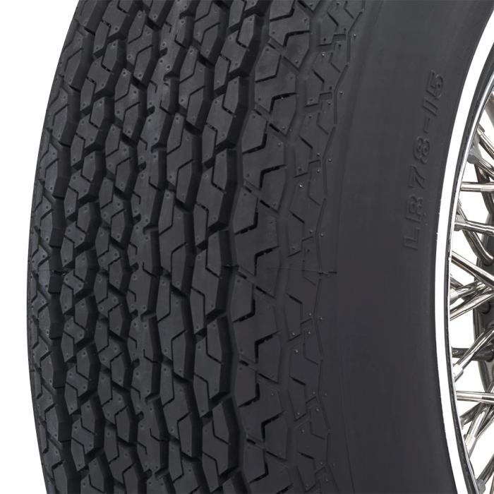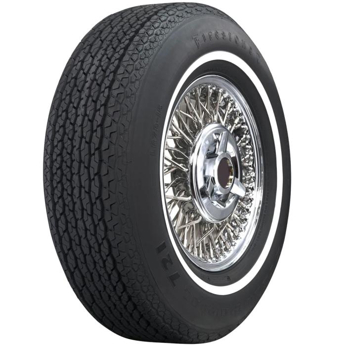The Firestone 721 steel belted radial tire was original equipment on many full size sedans from the 1970s. Coker Tire is proud to offer the LR78-15 size, which is perfect for 1971 through 1979 Cadillac, Lincoln and other full size American classics. This new radial tire features the original tread design, sidewall lettering and 3/4-inch whitewall, offering authentic looks and modern radial performance. These Firestone radials are made in the USA and they are thoroughly tested to exceed DOT regulations.