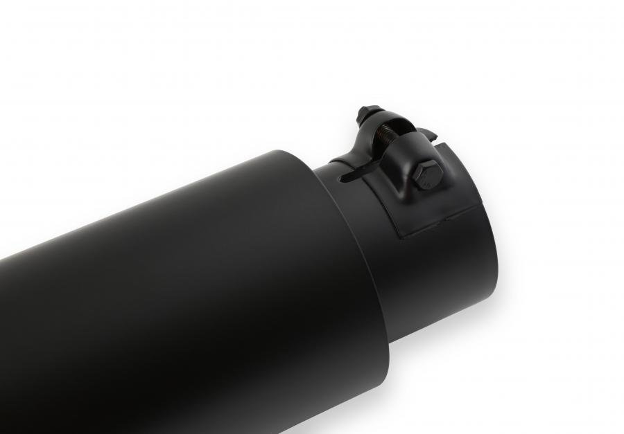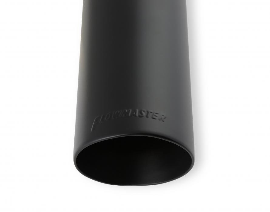 Flowmaster introduces this 304S stainless steel tip that features a black ceramic coating. The tip has a double wall construction and an angle-cut end with the Flowmaster logo embossed into it. This tip is a clamp-on design that has a 3.50" diameter and will fit over a 2.50" pipe. Sold individually.