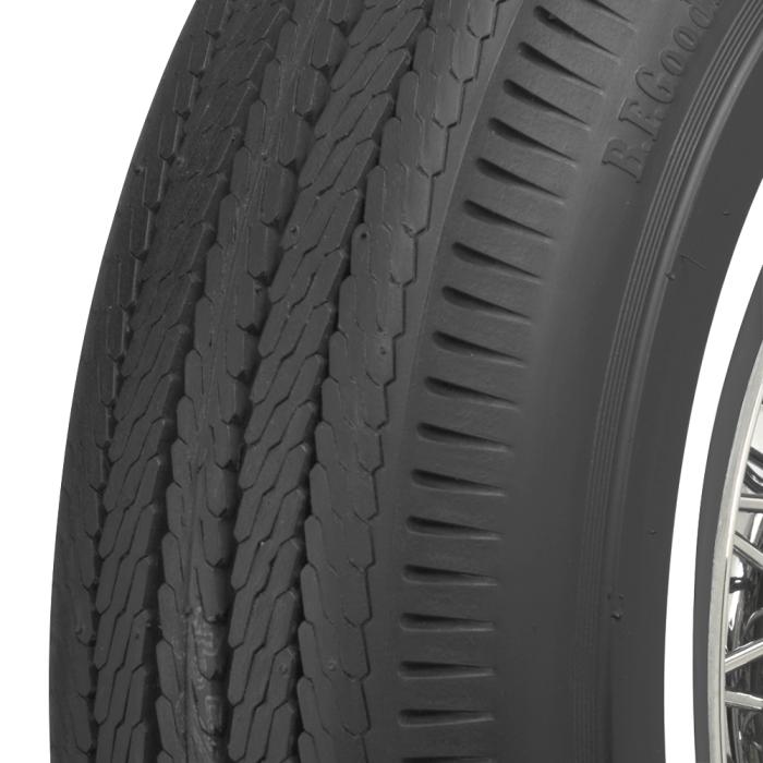 These tires feature classic pie crust sidewall styling and authentic tread designs. BFGoodrich bias ply narrow whitewall tires are made in the USA and DOT/ECE (European Community) approved where applicable. Whitewalls are smooth, with all stampings and lettering in the the black portion of the sidewall and are covered by our exclusive life of the tread warranty. Please note that dimensions listed tread width, section width and overall diameter are non-scientific and based on an inflated tire, mounted on a wheel. Dimensions may vary due to rim width and inflation pressure. Tread patterns and sidewall styles vary, please click on individual tires below to view photos.