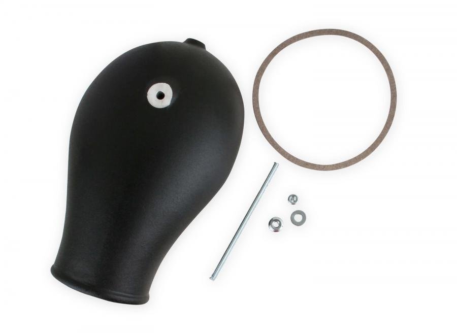 Introducing carb hats from Holley EFI. These new carb hats are the perfect solution for any blow through installation. The Holley EFI carb hats contoured designed promotes optimal airflow, while providing excellent hood clearance for most applications with a 5-1/8" air cleaner flange. These hats feature a 1/8th NPT reference port that can be used as a convenient hookup for boost gauges or carbureted fuel pressure regulators . The inlet is designed for a 3.5" silicone coupler, with a sealing lip to ensure a leak free installation.
