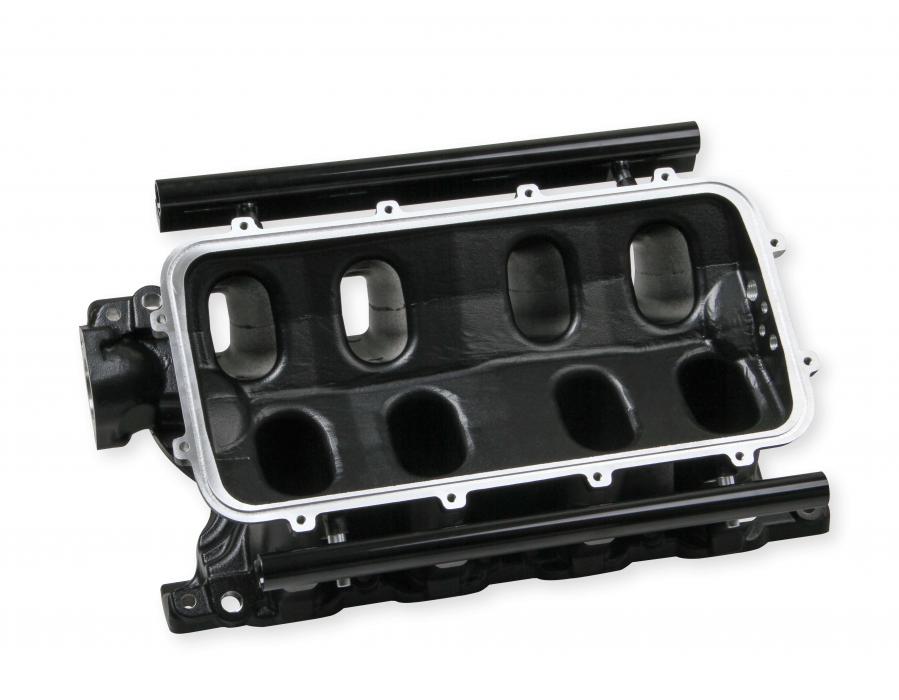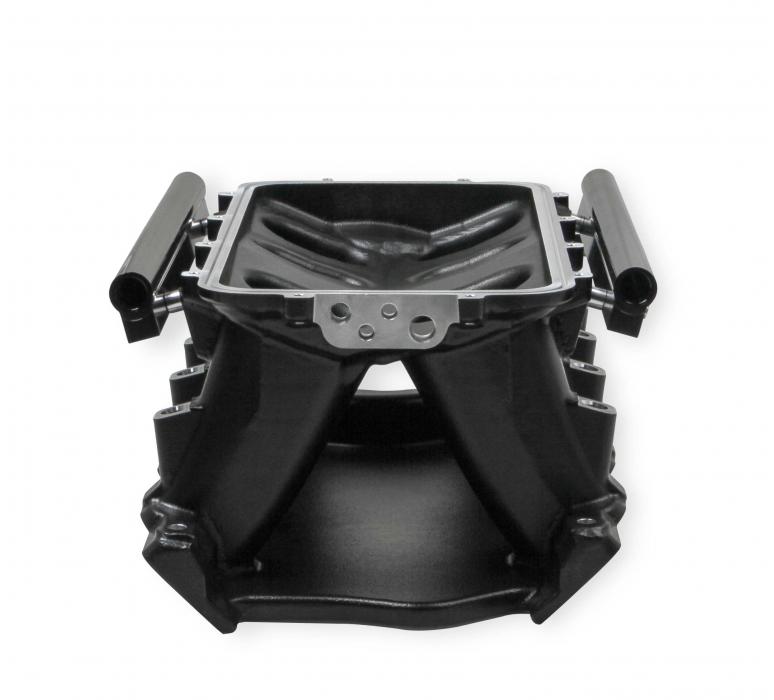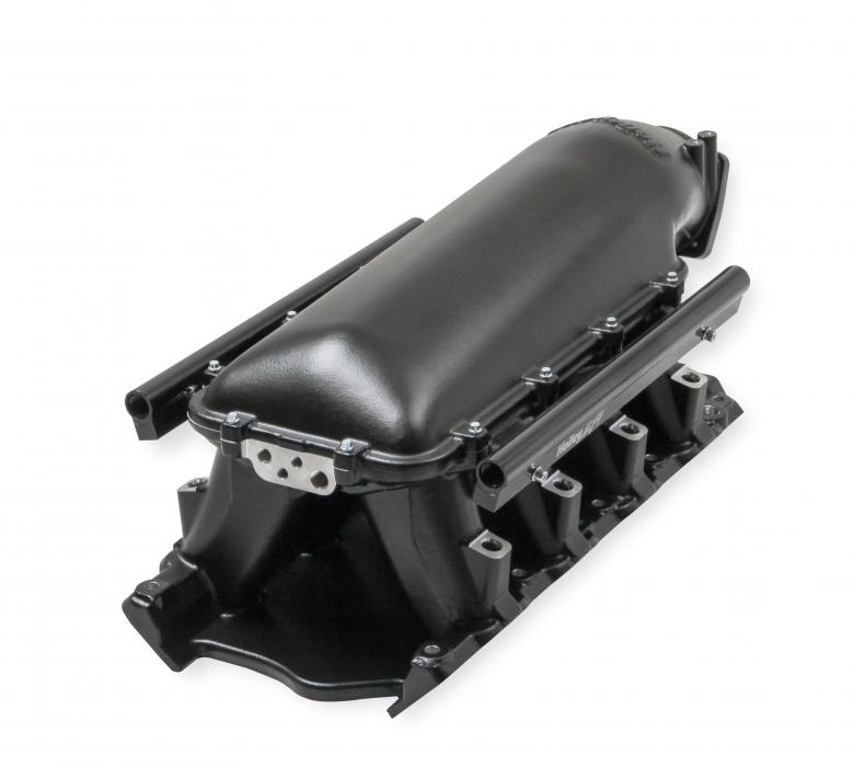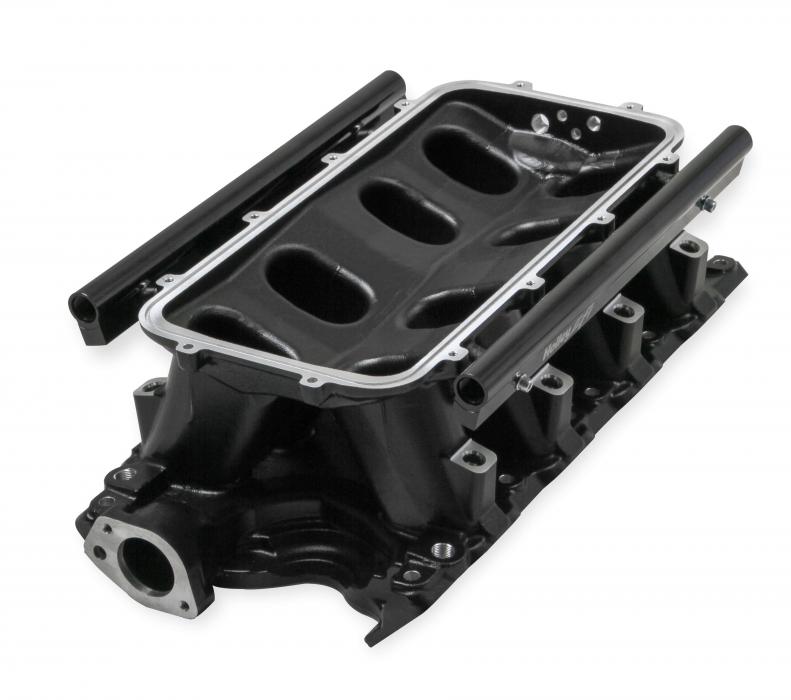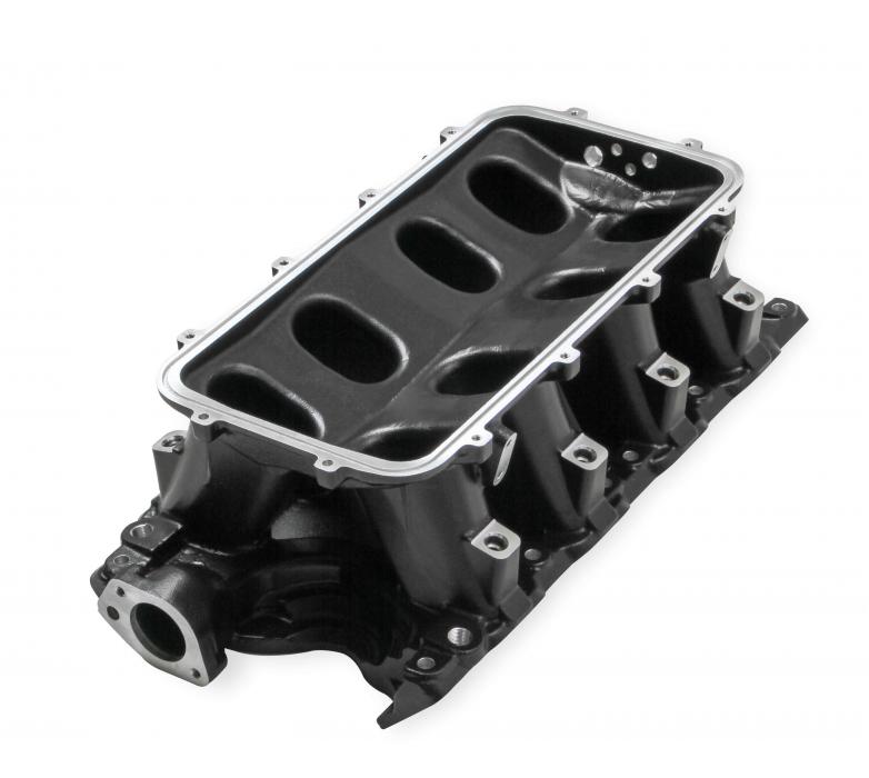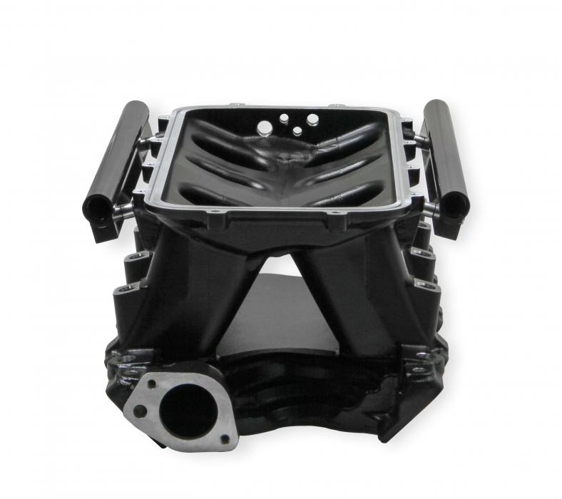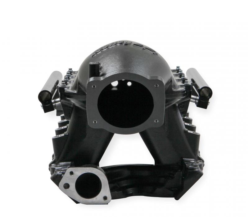 The EFI Hi-Ram manifold line has a new addition for the 351W Ford application. This manifold comes with a 105MM LS throttle body flange top, a 105mm LS throttle body top is also available. The runner length and tapered cross section design will perform well for a wide range of engine combinations. The engineering team also redesigned the water crossover passage to allow room for distributor phasing. Aggressive, bold, race-bred styling will make bad intentions clear for drag race, muscle car, marine, off-road, sandrails, pulling trucks, track, street-rod applications and more!