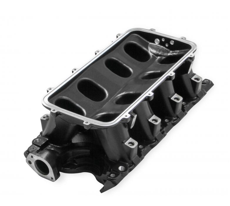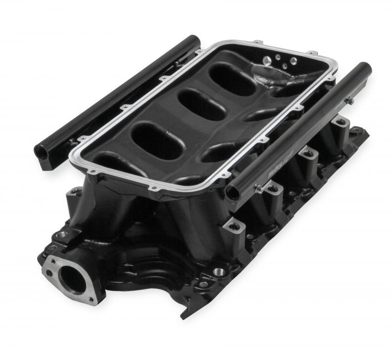 The EFI Hi-Ram manifold line has a new addition for the 351W Ford application. The runner length and tapered cross section design will perform well for a wide range of engine combinations. The engineering team also redesigned the water crossover passage to allow room for distributor phasing. Aggressive, bold, race-bred styling will make bad intentions clear for drag race, muscle car, marine, off-road, sandrails, pulling trucks, track, street-rod applications and more!
