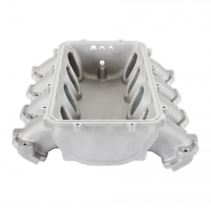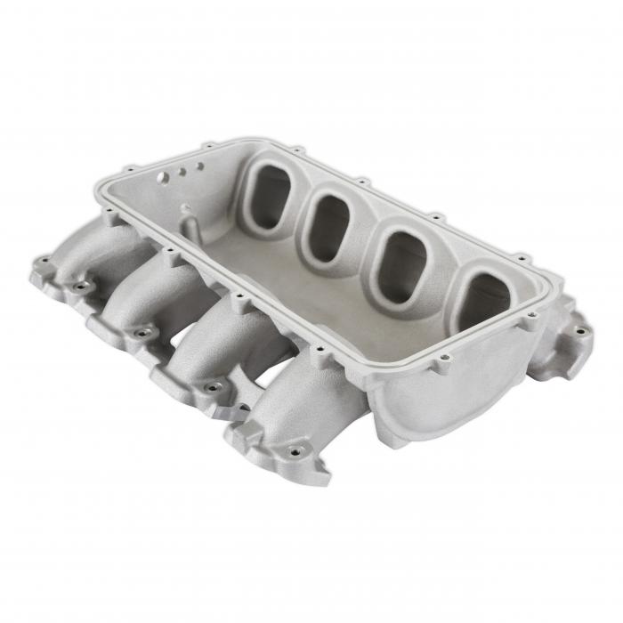 The Holley GM Gen V LT Lo-Ram intake manifold kits are designed for GM Gen V LT engines equipped with GM LT cylinder heads. These intake manifolds will work with OE or aftermarket cylinder heads. The Lo-Ram intake manifolds are designed for forced induction (supercharged or turbocharged) engine applications with peak power at 7,000-8,000 rpm depending on the application. The standard plenum top throttle body flange has a 105 mm opening to work with throttle body part number 112-581 or similar models. The top-feed plenum base intake manifold is designed with a reduced overall height to fit under a stock or mildly modified hood. The Lo-Ram provides a low profile modular intake manifold suitable for use with plenum mounted air-to-water intercoolers for boosted applications. Various Hi-Ram plenum top options are available to compliment the top-feed base intake manifold kits and fabrication flanges are offered to aid the fabrication of plenum tops for custom installations. Available for OE direct fuel injection only and with port fuel injection provisions. For the port fuel injection option, the high volume -8AN fuel rail kit includes hardware and brackets to accommodate long (usually standard length) fuel injectors or short (such as Pico, or LS7) fuel injectors.