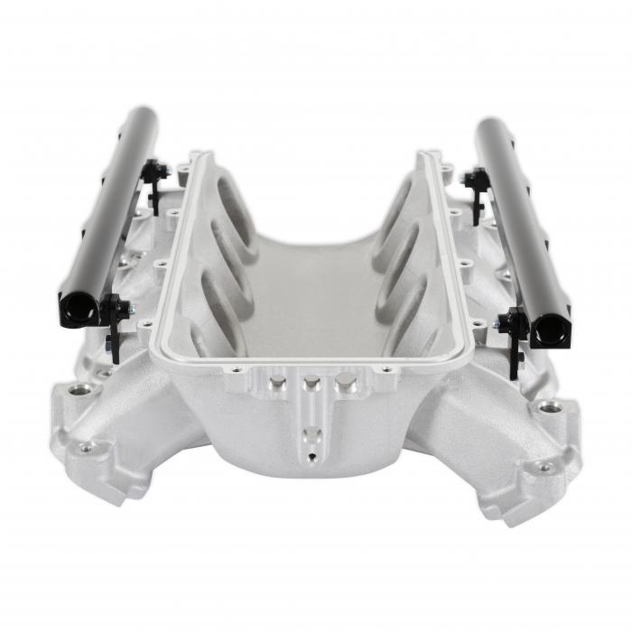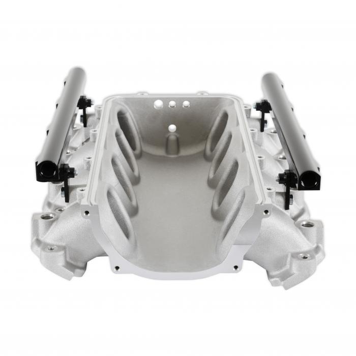 The Holley GM Gen V LT Ultra Lo-Ram intake manifold kits are designed for GM Gen V LT engines equipped with GM LT cylinder heads. These intake manifolds will work with OE or aftermarket cylinder heads. The Ultra Lo-Ram intake manifolds are designed for forced induction (supercharged or turbocharged) engine applications with peak power at 7,000-8,000 rpm depending on the application. The front entry throttle body flange has a 105mm opening to work with throttle body part number 112-581 or similar models. The front-feed base intake manifold is designed with a lower overall height to fit under a stock or mildly modified hood. The Ultra Lo-Ram provides a very low-profile modular intake manifold along with various fabrication flanges to aid the fabrication of special throttle body adapters or inlet ducts for custom installations. Available for OE direct fuel injection only and with port fuel injection provisions and a burst panel flange options. For the port fuel injection option, the high volume -8AN fuel rail kit includes hardware and brackets to accommodate long (usually standard length) fuel injectors or short (such as Pico, or LS7) fuel injectors.