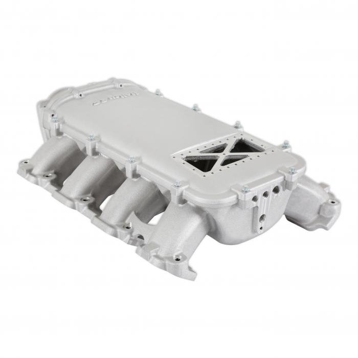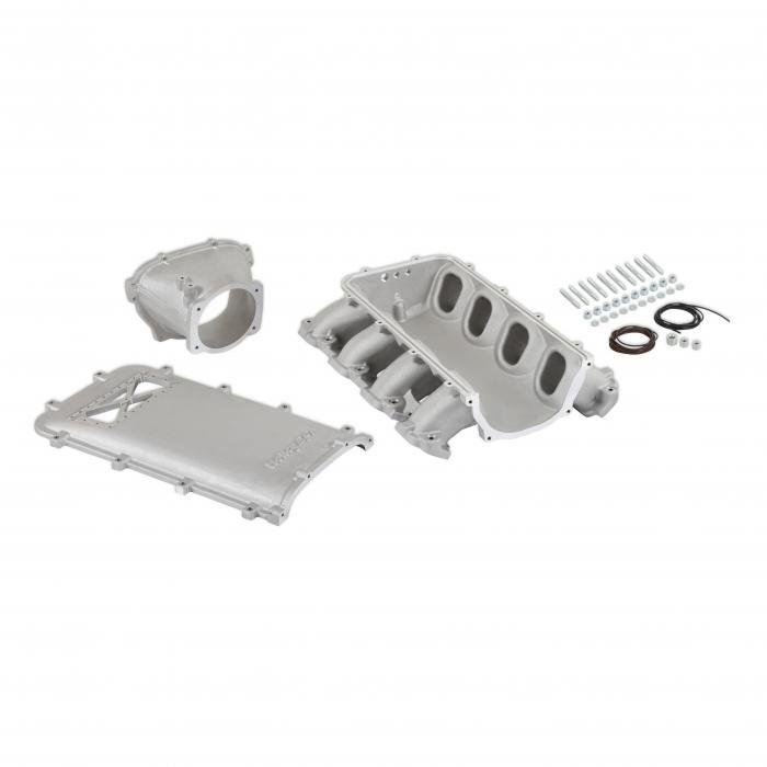 • Modular design & front entry plenum flange allows design & fabrication of special throttle body adapters or inlet ducts for custom installations. Base manifold, plenum top, throttle body adapter available as separate kits