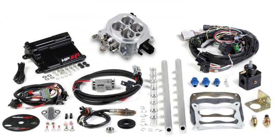 Do you have a Mopar, Ford or other type engine you want to install multi-port fuel injection on? No, problem, the Holley HP universal retrofit EFI kits are designed to be used with any V-8 intake manifold. The kit comes with injector bungs and un-machined fuel rails so you can modify to fit any single plane 4bbl intake manifold. The HP universal retrofit kits also come with the necessary wiring, ECU, sensors and throttle body. Just select the fuel pump and injectors of choice and you are off and running.