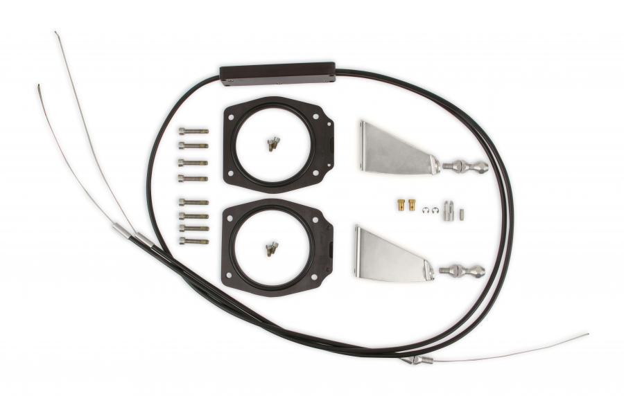 The Holley Sniper EFI Dual Plenum Fabricated intake manifolds since their introduction have proven to be a stout performing street intake. The challenge with the dual plenum intake is an effective throttle linkage solution to handle dual cable driven throttle bodies. Holley Sniper EFI to the rescue! The Holley Sniper EFI throttle linkage kit for our Duel Plenum fabricated intake manifolds offer a unique solution to solve this problem. Our complete kit provides all brackets, plates, throttle cables, and hardware to offer a complete and seamless installation. Linkage kits are available in a Silver or Black finish and 92mm and 102mm throttle bore diameters to offer solutions for all of our current Dual Plenum Intake Manifolds!
