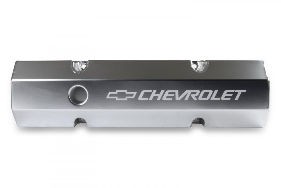 Holley is pleased to release its latest fully licensed product--GM Track Series Fabricated Aluminum Valve Covers. The GM Track Series family of valve covers gives you an excellent way to add a high-end fabricated look combined with a lightweight and tough valve cover for your favorite Chevy engine. These valve covers are constructed of 6061 T5 sheet aluminum, feature a laser etched "Chevrolet" and Bow Tie logo, and precision TIG welded for a proper fit. They are available in silver anodized or black coated finishes along with various heights to clear most popular rocker arm combinations. All of our valve covers include mounting hardware for quick and simple installation.