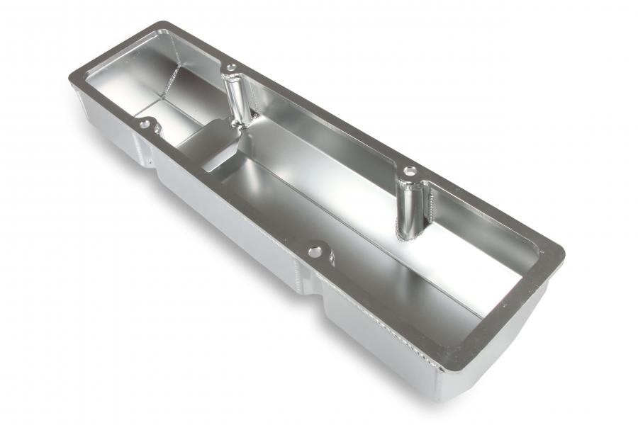 Holley GM Licensed Valve Cover, Track Series, SBC, Fabricated Aluminum, Perimeter Bolt, Silver 241-287: