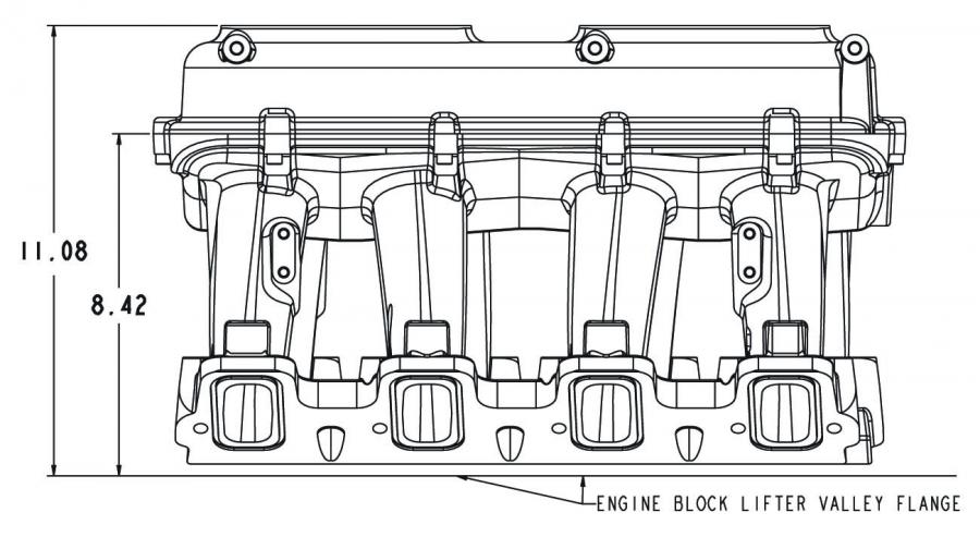 - Base Plenum Top Mounting Flange Height – 8.42” to the lifter valley cover flange on engine block.