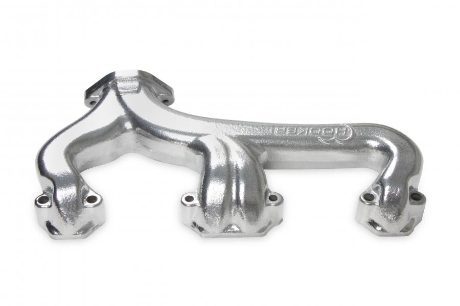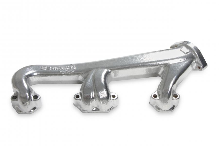 Hooker's new cast iron small-block Chevy exhaust manifolds offer an increase in performance and visual appearance over stock-style manifolds. Their compact design fit into a wide variety of replacement and engine swap applications. This means you get the traditional look and easy fitment of a stock style exhaust manifold but now with a smoother, cleaner appearance, plus more modern features. These manifolds are cast out of high silicon-molybdenum ductile iron for high temperature strength and better resistance to oxidation and cracking. Internally these manifolds have a larger than stock 1 5/8-inch cross-sectional area and 2 1/2-inch outlets for better air flow and improved performance. Designed for rectangular port heads, these manifolds fit many popular GM applications including standard straight and Vortec straight plug head designs. Finishes include natural, silver, black, and titanium ceramic. Gaskets and hardware are included, along with weld-on flanges to aid in downpipe installation.