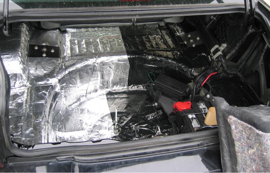 Hushmat Custom Vehicle Sound Deadening and Thermal Insulation Trunk Kit treats the floor, rear quarter panels and trunk lid.