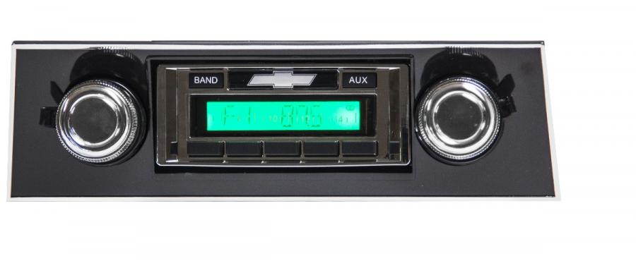 Custom Autosound's USA-230 is an excellent choice for classic car or truck enthusiasts looking for a more affordable radio without sacrificing quality electronics and a classic stereo look. It has been designed to fit in the stock dash without any modifications required. The USA-230 has the same appearance and all of the features offered in our USA-630 model simply without USB port, iPod dock and CD changer control. The USA-230 does provide an auxiliary input which can connect to iPods, iPhones, satellite radio tuners or any other device with a headphone jack. It also boasts 4 Channel RCA pre-outs and a digital display with electronic tuner, 16 station pre-sets and a 4-way fader.