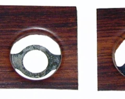 Embossed rosewood woodgrain inlays on stamped steel mounting plate Used behind radio knobs. RH and LH set. GM Group #: 10.252 GM Part #: 3945978 LH, 3945977 RH…