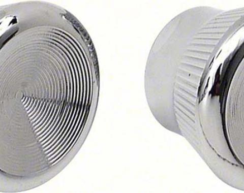 Accurate reproductions of the original radio knobs for Camaro, Chevelle, Corvette, Nova and full size Chevrolet with factory original AM or AM/FM radios. Chrome plated with correct black inserts.…