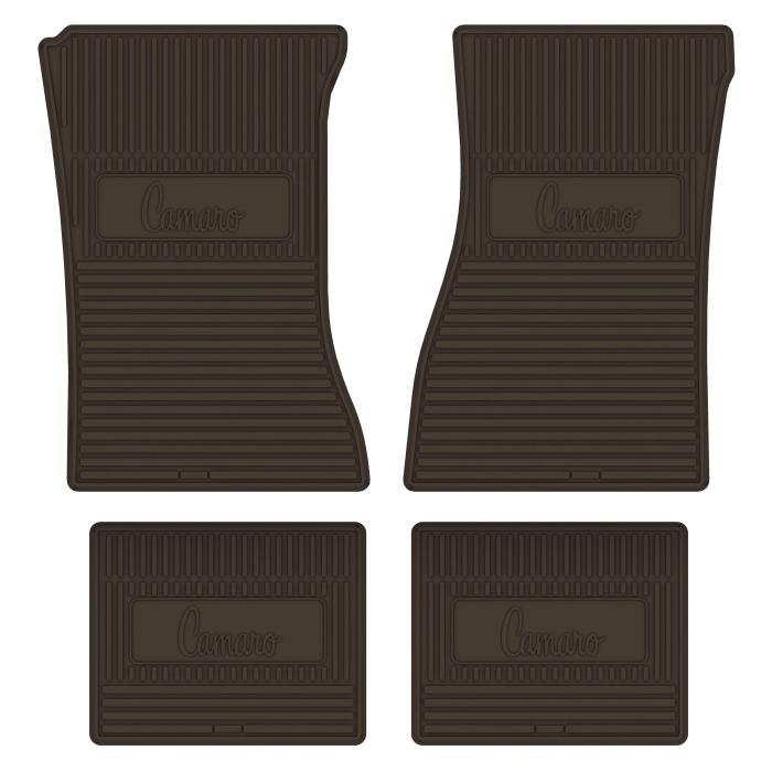 • 1970-74 CAMARO NEXT GENERATION CUSTOM VINTAGE RUBBER STYLE FLOOR MATS DESIGNED TO FIT THE ENTIRE FLOOR PAN OF YOUR CAR. GM LICENSED LOGOS ARE FEATURED ON BOTH FRONT AND REAR MATS.