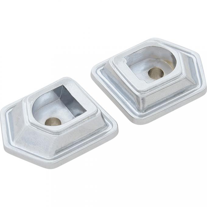 OER® reproduction dash panel bezel set for 1969 Camaro. Each bezel set is manufactured in die-cast zinc and chrome plated to replicate the original in quality and design. Bezels are used to mount the dash grab handle to the instrument panel. Sold in pairs. Includes RH and LH bezels.
