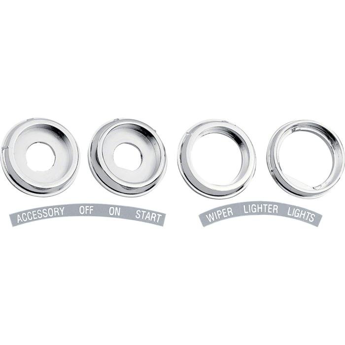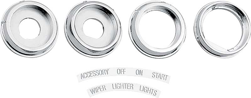 Reproduction of the original dash bezels designed for use with 1967 Camaro and Firebird models. Each bezel is manufactured in zinc die-cast metal that features a bright chrome plated finish. Each die cast reproduction is accurate to the finest detail. Includes a set of reproduction mylar chrome peel-and-stick lettering that allows replacement of the wiper, lights, lighter and ignition bezels.