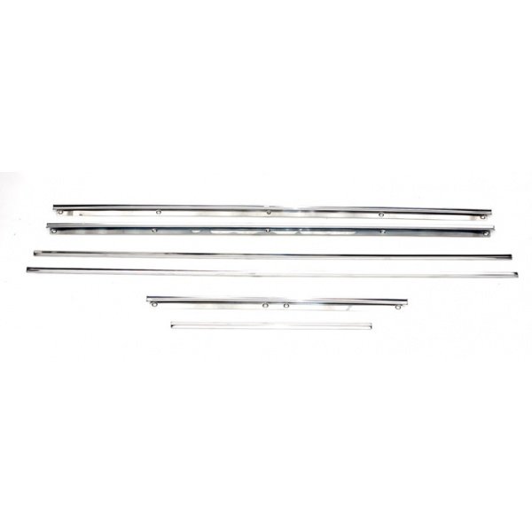 Best Quality Reproduction Highly Polished Stainless Steel Correct Profile For Standard Interior Convertibles 8-piece Set Best reproduction available of the interior molding kit for the 1967 Camaro. This kit includes the pieces that bolt to the upper metal on the door and rear side which the upholstery panels slide under and the lower moldings for both.