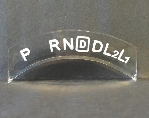 Reproduction Of Original Made In The U.S.A. This is a new Column Shift Indicator Lens for the TH350/400 transmission when installed in a car originally equipped with a Powerglide. The lens is laser and machine cut from clear plastic, with…