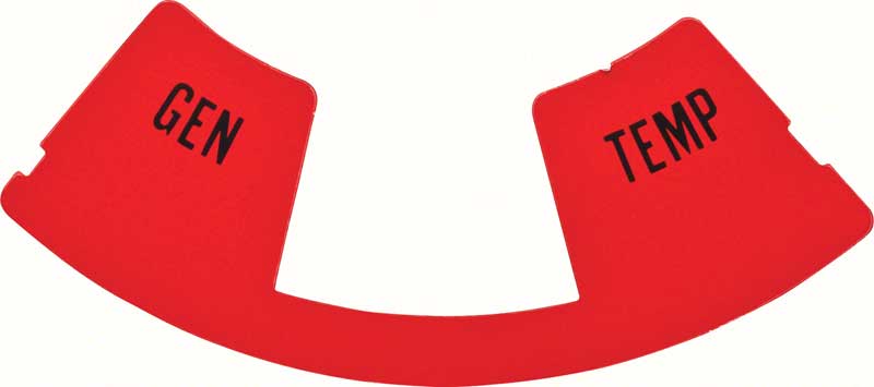 This correct OER® reproduction instrument panel GEN/TEMP warning lamp lens for the 1967-68 Camaro and Firebird in-dash fuel gauge. Lens covers the lamps at the bottom of the fuel gauge and features the correct lettering as shown.