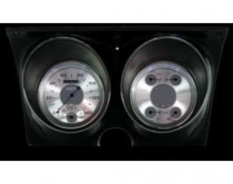 Hot Rod Series 4 5/8" Speedtachular, 2 1/8" Fuel, Oil, Temp, Volt with Stainless Low Step Bezels and Flat Glass Lenses. Speedtachular features a built-in ECM filter signal switch.