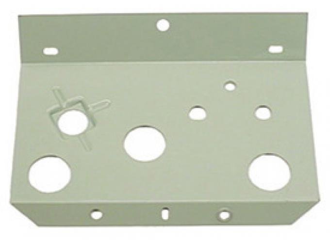 Die stamped steel with correct green coated finish. Console gauge mounting plate fits into base to position fuel and oil gauges. Accurate reproduction. GM Group #: 9.744 GM Part #: 6480878 (Blue plate available W-106C)