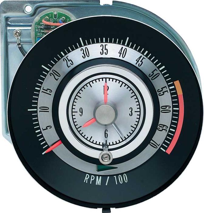 Reproduction of the original Tic-Toc-Tachometer designed for use with 1968 Camaro models with 327ci, or 350ci engines. Each tachometer/clock is manufactured to original GM specifications and features all of the elements found on the original. The backing is manufactured in stamped steel replicating the original design. This tachometer is produced with strict attention to detail including the correct font, numeration, and colors same as original. Gauge features a 5500 redline with the clock set in the center of the tach. Tachometers are pre-calibrated and tested to ensure accuracy after installation.