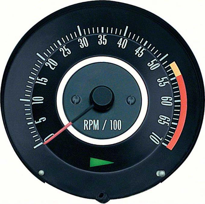 Reproduction of the original tachometer found on 1967 Camaro models with a 350 or 396/325hp engine and original code option U17 (special instrumentation). Each tachometer is manufactured to original factory specifications offering an authentic appearance and fit. Includes correct silkscreened lettering and numbers. Replaces the original exactly. Pre-calibrated and tested. Ready to install.