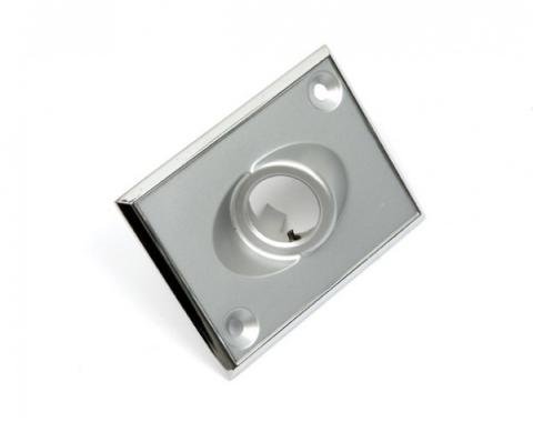 Reproduction of the original textured pebble grain chrome remote mirror bezel designed for use on the inner driver side door panel of various GM models equipped with remote mirrors. This bezel securely holds the remote mirror knob carrier…