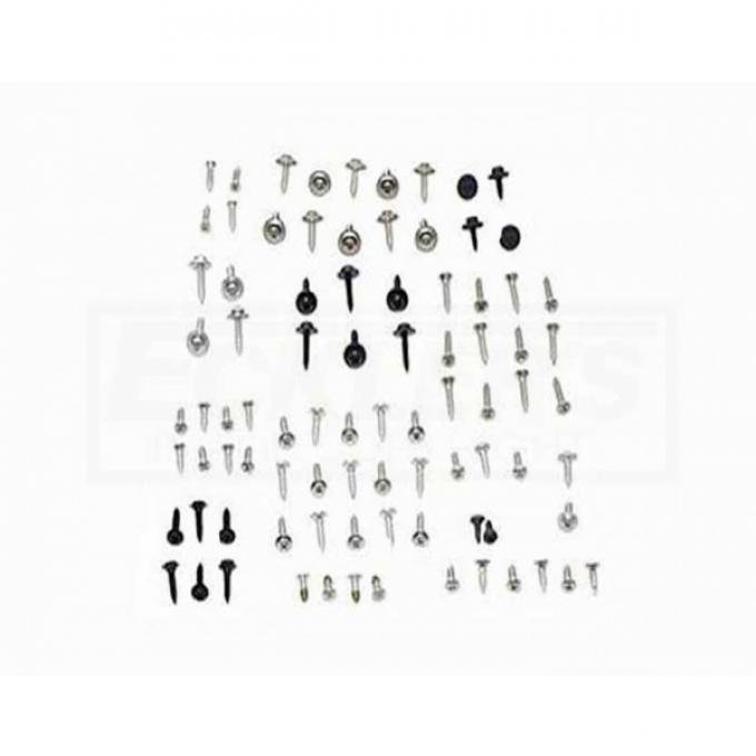 NOTE: Kit Includes: Screw Kits For: Seal Plates, AC Panel, Head Rest, Fresh Air Vents, Door Panels, Kick Panels, Dash Panel And Pad, Rear View Mirror, Sunvisor Brackets, Seat Belt Clips, Steering Column Cover, Weatherstrips, Rear Quarter Panel Cover, Storage Box, Arm Rest and many more.