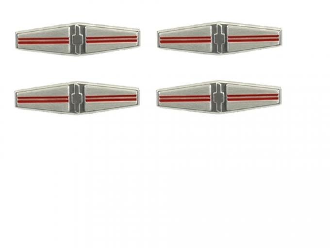 Correct emblem includes mounting tabs to be folded as original. Sold in set of 4. Correct backing plates available separately, or in 8 piece kit. Officially Licensed GM Restoration Parts. GM PART #: Emblem 7746815