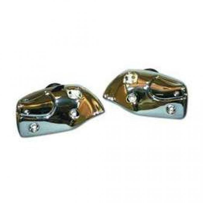 Best Quality Reproduction Firebird Sunvisor Bracket Officially Licensed GM Restoration Part Die-cast as Original Triple Chrome Plated Includes Special Chrome Installation Hardware Fits Convertible Driver & Passenger Side Fits 1968-69 Also Best Quality reproduction of the 1967 LH & RH Firebird Convertible Sunvisor Brackets. 1967 Firebirds originally had the full chrome sunvisor bracket and convertible header chrome moldings from the factory. Federal mandates for 1968-69 required these parts to be satin finish to cut down on glare from the sun. This Left and Right side convertible sunvisor bracket can be used on 1968-69 for a clean, custom look.
