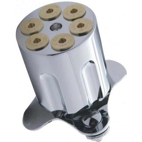 Great Hotrod Accessory For Hunters, Sportsmen & Gun Enthusiasts Highly Polished, Chrome Plating Billet Aluminum 6 Shooter Cylinder Brass Finish .44 Mag Rounds Look Just Like The Real Thing Heavy Duty Internals Insure Long Service Life Heavy Duty Clamp Secures Knob To Wheel Go ahead...make our day and yours too with this steering wheel spinner knob that looks just like a revolver cylinder! No matter what you call it... a steering wheel spinner, suicide knob or a Brody knob this heavy duty spinner is loaded with . Bright chrome plating over billet aluminum and heavy duty internals insure long service life in your 1967-2014 Camaro. Fits: 1967, 1968, 1969, 1970, 1971, 1972, 1973,1974, 1975, 1976, 1977, 1978, 1979, 1980, 1981, 1982, 1983, 1984, 1985, 1986, 1987, 1988, 1989, 1990, 1991, 1992, 1993, 1994, 1995, 1996, 1997, 1998, 1999, 2000, 2001, 2002, 2003, 2004, 2005, 2006, 2007, 2008, 2009, 2010, 2011, 2012, 2013, 2014 NOTE: Please check your local laws regarding spinner knobs.