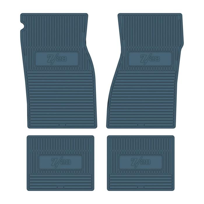 • 1967-1969 Z/28 NEXT GENERATION CUSTOM VINTAGE RUBBER STYLE FLOOR MATS DESIGNED TO FIT THE ENTIRE FLOOR PAN OF YOUR CAR. GM LICENSED LOGOS ARE FEATURED ON BOTH FRONT AND REAR MATS.