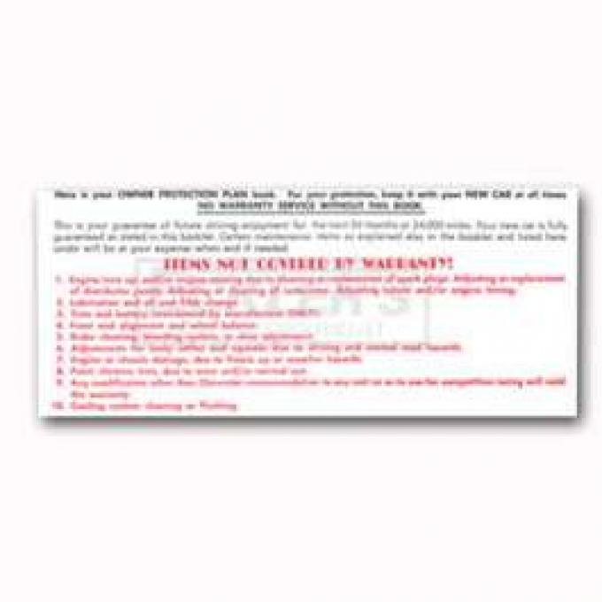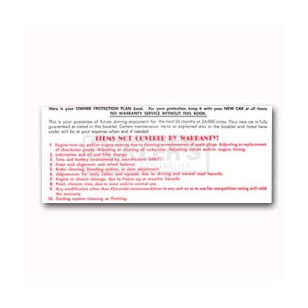 Show Correct Crisp Reprint Of Original Factory Warranty Card Correct Text And Colors Great Addition To Your Firebird Literature Collection Dealership literature like warranty cards are great additions to your car's show display. Warranty cards were included with your 1967, 1968 or 1969 Firebird owner's manual at the dealership and outlined procedures for repairs as well as items covered and not covered under the factory warranty. Most original warranty cards did not survive over the years. Our crisp reprint is a show correct duplicate of your original GM warranty information.