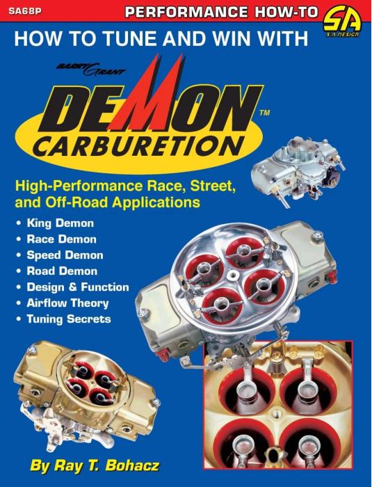 How to Tune and Win with Demon Carburetion provides a detailed look at carburetor and engine theory in an easy to understand manner, and is a guide for choosing the correct carburetor for the application. Tuning tips for racing, and street/strip use are included and each of the four Demon models are analyzed in detail along with the basics of combustion, air flow, emissions, fuel systems, and gasoline. To add to the learning experience, each chapter includes side bars and review questions. For convenience, a glossary of over 460 relevant terms, is included. Consisting of 160 pages and over 400 photos, charts, graphs, and illustrations, Demon Carburetion is positioned to become the industry standard of technical reference for the enthusiast who has a thirst for knowledge. The Demon carburetor has taken the industry by storm with it's revolutionary design and exacting performance. Founded by Barry Grant, Demon Carburetion is one of the newer, more recognized names in performance carburetor manufacturing.