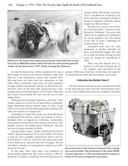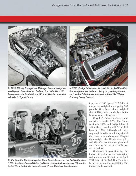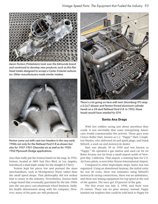 In Vintage Speed Parts: The Equipment That Fueled the Industry, veteran hot rod historian Tony Thacker looks at the history of hot rodding through the eyes of speed equipment manufacturers. Covered chronologically, the book begins with the early 4-cylinder engines. In 1932, Henry Ford introduced the flathead V-8, which was slow to be adopted as the engine of choice in racing until the parts industry caught up. Once it did, the flathead, although interrupted by the war, was the engine to run until the automobile manufacturers introduced overhead-valve V-8 engines in the late 1940s. Chrysler's early-1950s Hemi and Chevrolet’s small-block V-8 in 1955 spelled the end for the flattie. Both mills dominated well into the 1970s, and the speed industry was there to support all platforms in spades. During that period, every auto manufacturer made a V-8 worthy of modification, and the speed industry boomed. Eventually, the speed equipment manufacturers grew to the point of becoming corporate entities, as mergers and acquisitions became the much less interesting story.