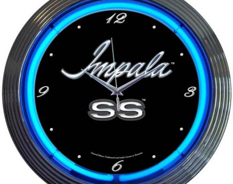 Neonetics Neon Clocks feature a hand blown ring of real glass neon, generating 25 watts of light. The neon clocks have glass faces and feature multi-tiered art deco styles rims. The Chevy SS Super Sport neon clock features a chrome…