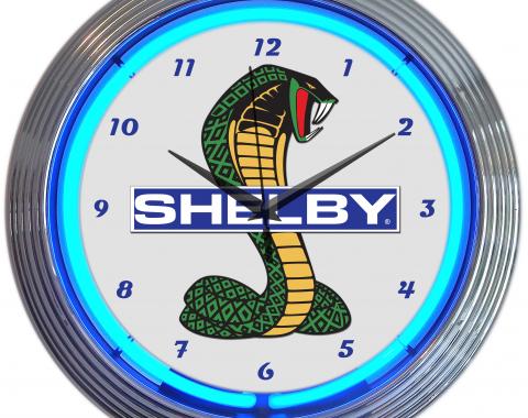 Neonetics Neon Clocks feature a hand blown ring of real glass neon, generating 25 watts of light. The neon clocks have glass faces and feature multi-tiered art deco styles rims. The Shelby Cobra Ford OLP neon clock features a chrome rim…