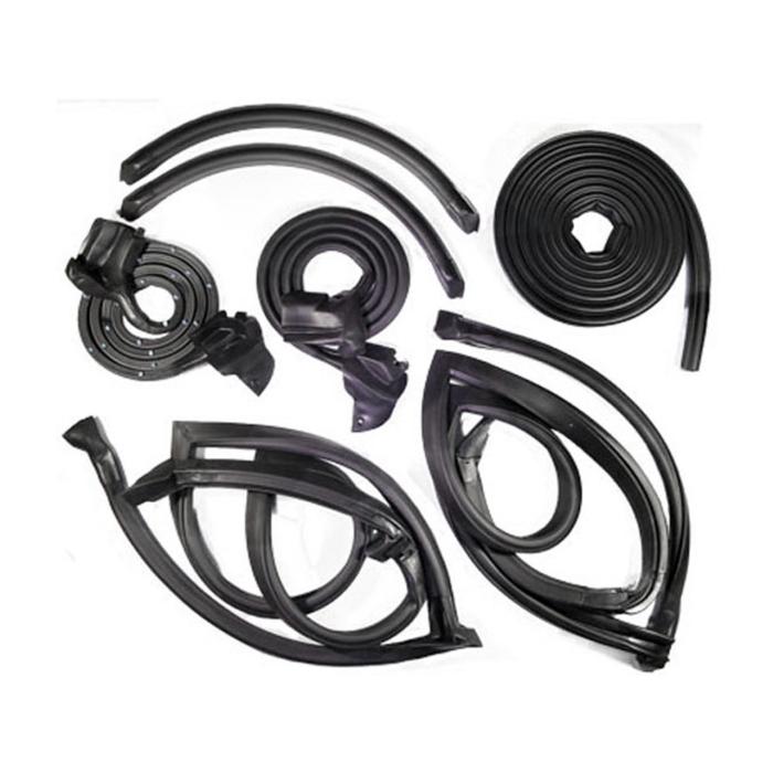 For 1982-1992 Chevrolet Camaro and Pontiac Firebird models with a factory T-top option, this comprehensive weatherstripping kit ensures a snug, weatherproof seal for your vehicle. The kit includes high-quality seals for the doors (LM 22-C), T-top to body (TP 7003), T-top side (ELP 7003), and trunk (TK 46-F), all designed to fit perfectly and keep out water, wind, and debris. Crafted by SUPERsoft, these seals are built to last and maintain their flexibility over time, ensuring your car stays protected and looking great. Installation is straightforward, with each piece tailored to fit its specific location, making it easy to restore your vehicle’s original weatherproofing. Backed by a 30-year warranty, this kit offers peace of mind and long-term durability.