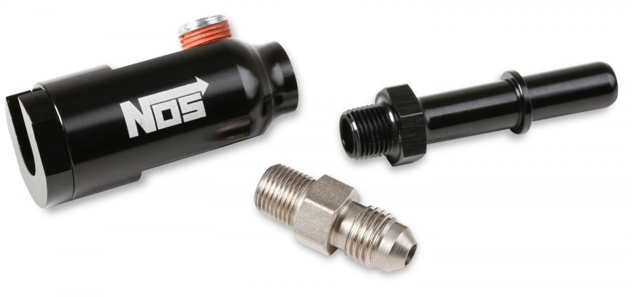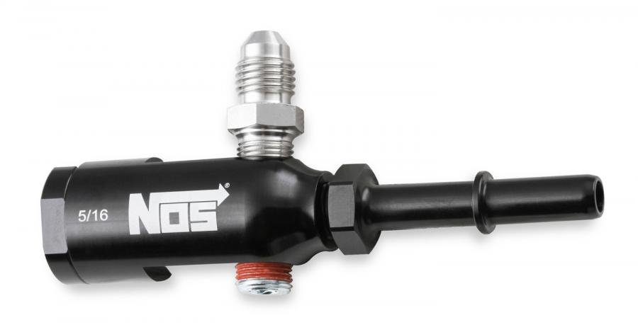 Eliminates Cutting, Drilling & Modifications When Installing Nitrous on a Late model Fuel Injected Vehicle. Simply disconnect the OE Fuel Hose and Install this Adapter Between the OE Fuel Rail and Fuel Hose. The (3) 1/8" NPT Ports Can Be Configured in Any Direction For Best Fit In Your Application. The -4 AN Adapter is Used to Feed Fuel to Your Nitrous Plate. Includes: Main Body - Fits 5/16" Tube & (3) NPT Ports 1/8" NPT Pipe Plug w/ Sealant - Steel w/ Nickel Plating 1/8" NPT Male to -4 AN Male Adapter - Steel w/ Nickel Plating OE Fuel Line Adapter 5/16" Tube x 1/8" NPT Male