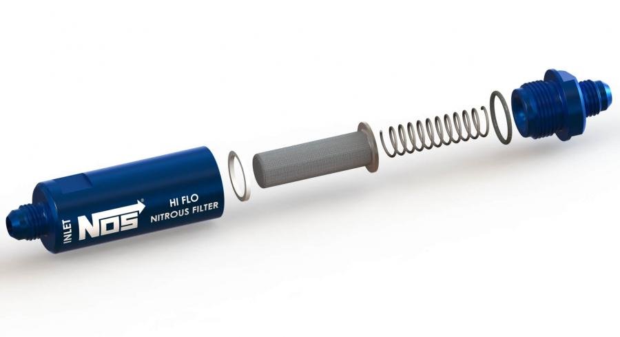 One of the most important components of any nitrous system is a good filter. NOS filters feature an aircraft-type reusable stainless steel mesh filter element to keep contaminants from attacking a solenoid and plugging the jets. These new NOS hi-flow billet aluminum filters feature a precision 2024 billet aluminum body and a 140-micron serviceable stainless steel mesh filter element that has 10 times the filtering area of a standard filter. Our filters feature a radius on the outlet fitting to maximize flow and are available in a variety of sizes depending on your needs.